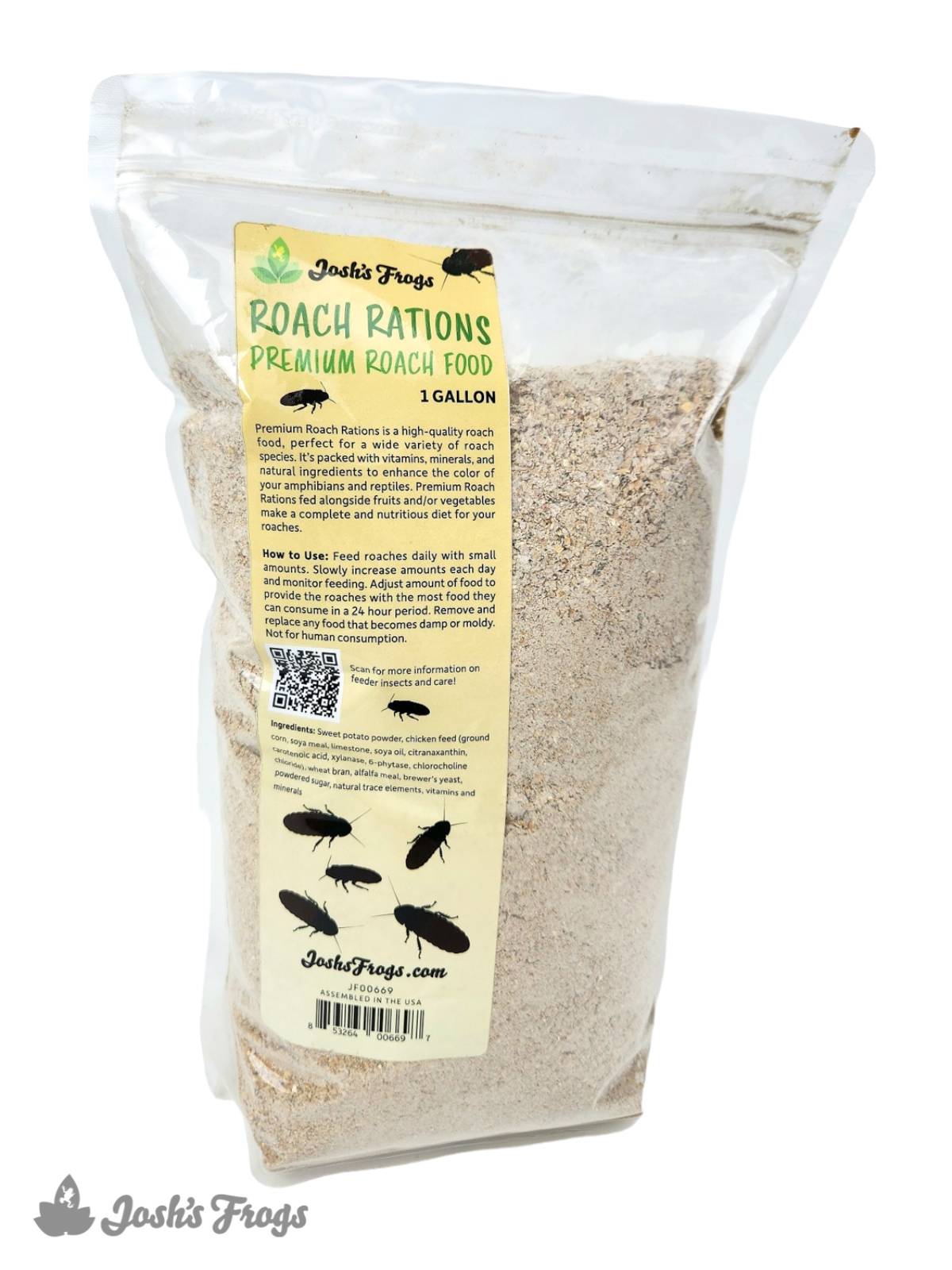 Josh’s Frogs Roach Rations Premium Roach Food (1 gallon) is a prepared diet, perfect for a wide variety of roach species. It is fortified with vitamins and minerals and contains natural ingredients to enhance the color of your frogs and reptiles. Your roaches are sure to devour this diet! Josh’s Frogs Roach Chow is not intended to make up more than 80% of your roach’s food intake – be sure to feed alongside fruits and/or veggies!